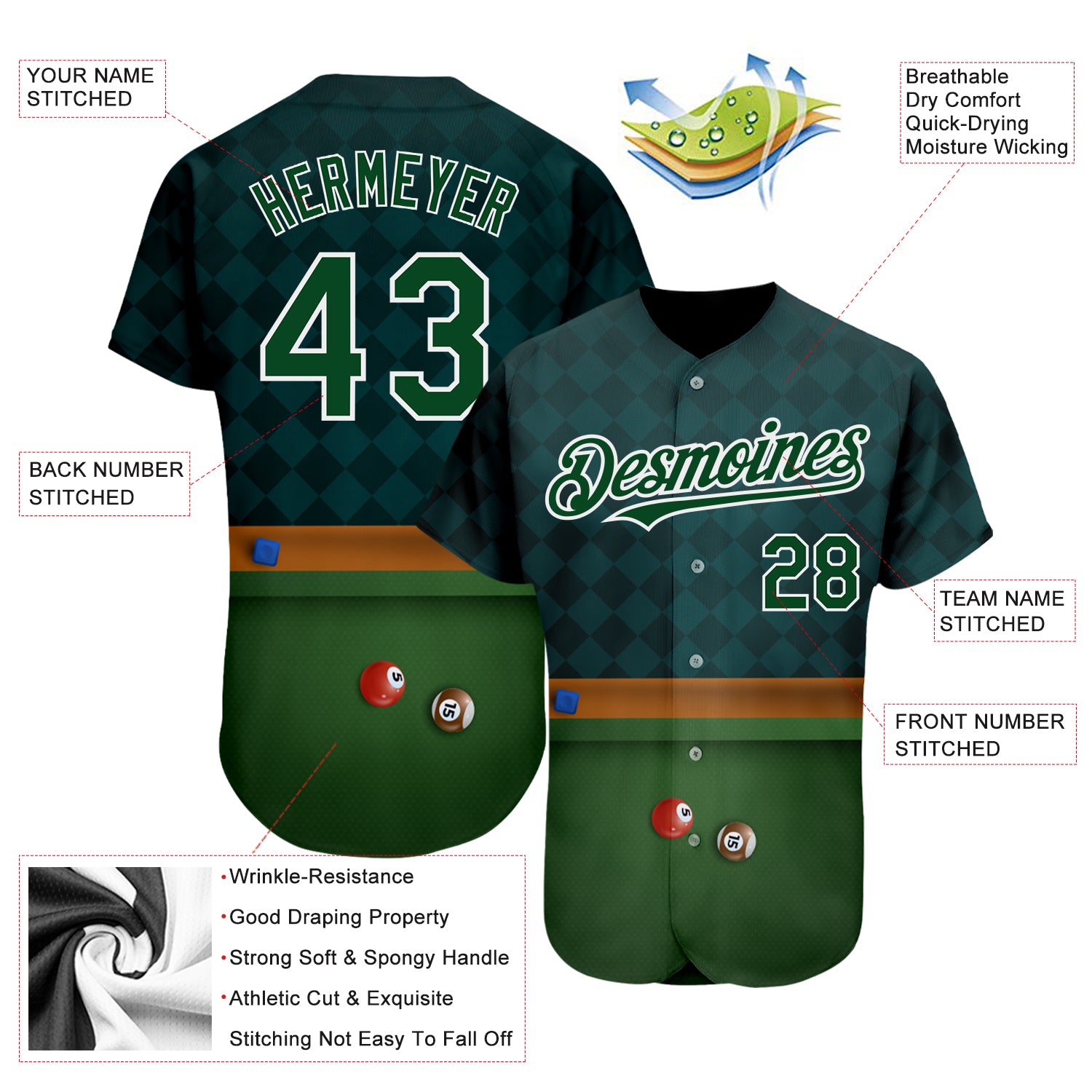 Custom Green White 3D Pattern Design Billiards Authentic Baseball Jersey