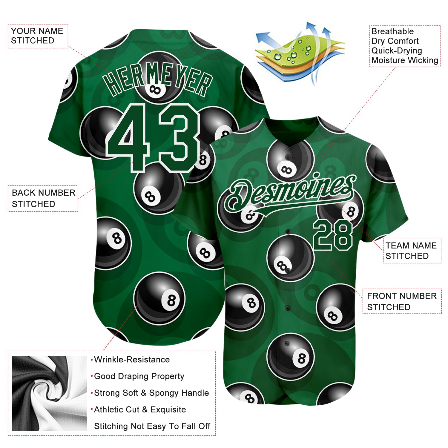 Custom Green White 3D Pattern Design Billiards Snooker 8 Ball Authentic Baseball Jersey