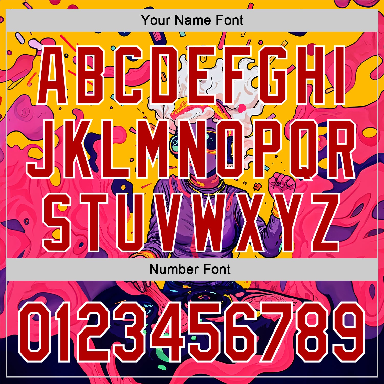 Custom Gold Red-White 3D Pattern Design Rave Party Trippy Disco Authentic Baseball Jersey