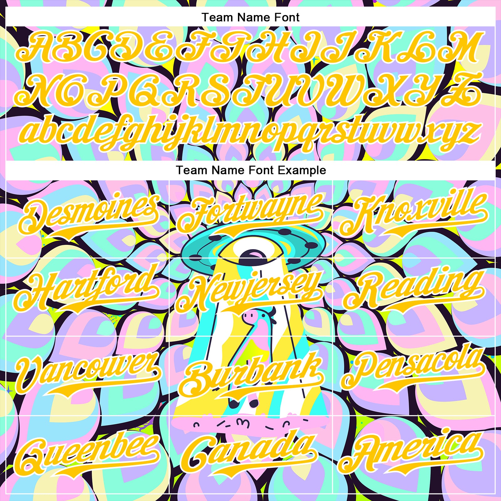 Custom Purple Yellow-White 3D Pattern Design Trippy Magic Mushrooms Alien Authentic Baseball Jersey