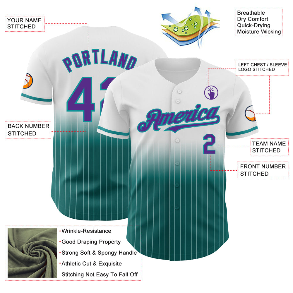 Custom White Pinstripe Purple-Teal Authentic Fade Fashion Baseball Jersey