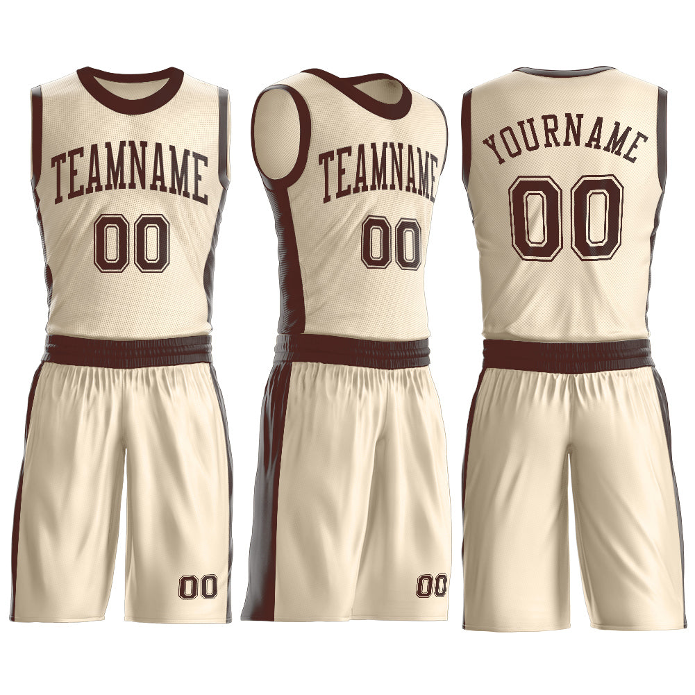Custom Cream Brown Round Neck Suit Basketball Jersey