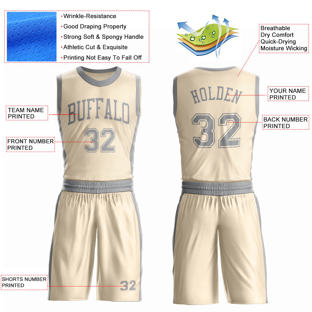 Custom Cream Gray Round Neck Suit Basketball Jersey