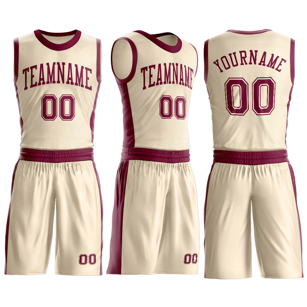 Custom Cream Maroon Round Neck Suit Basketball Jersey
