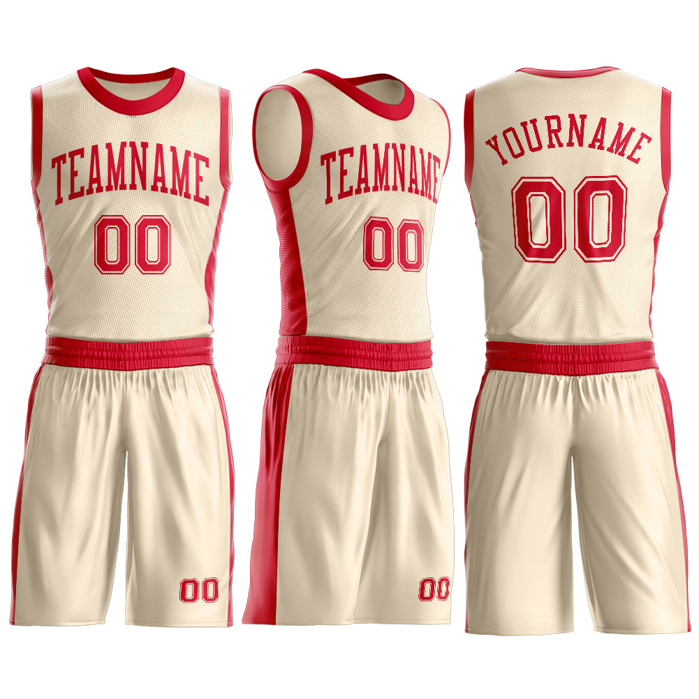 Custom Cream Red Round Neck Suit Basketball Jersey