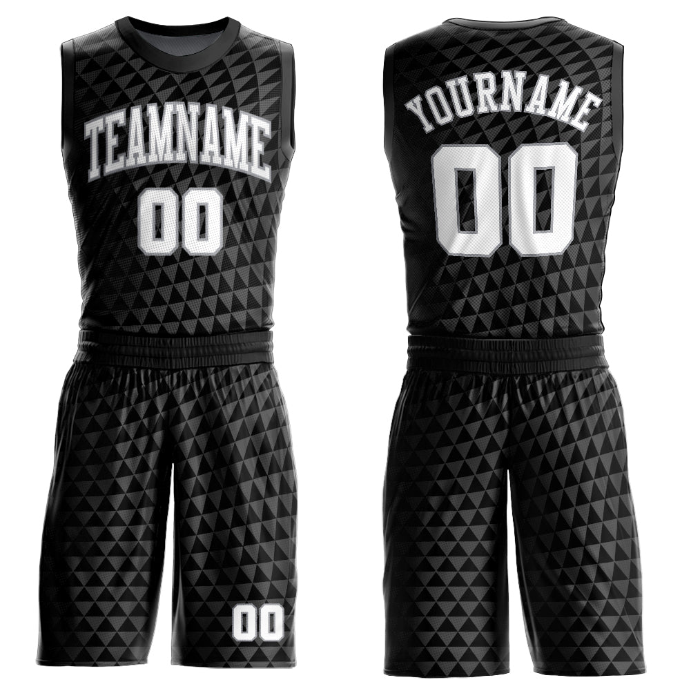 Custom Black White-Gray Triangle Shapes Round Neck Sublimation Basketball Suit Jersey