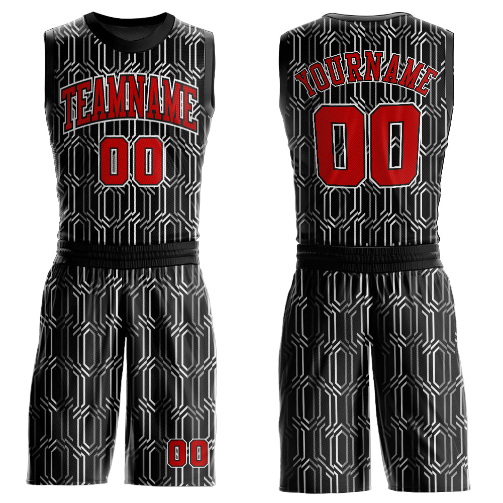 Custom Black Red-White Round Neck Sublimation Basketball Suit Jersey