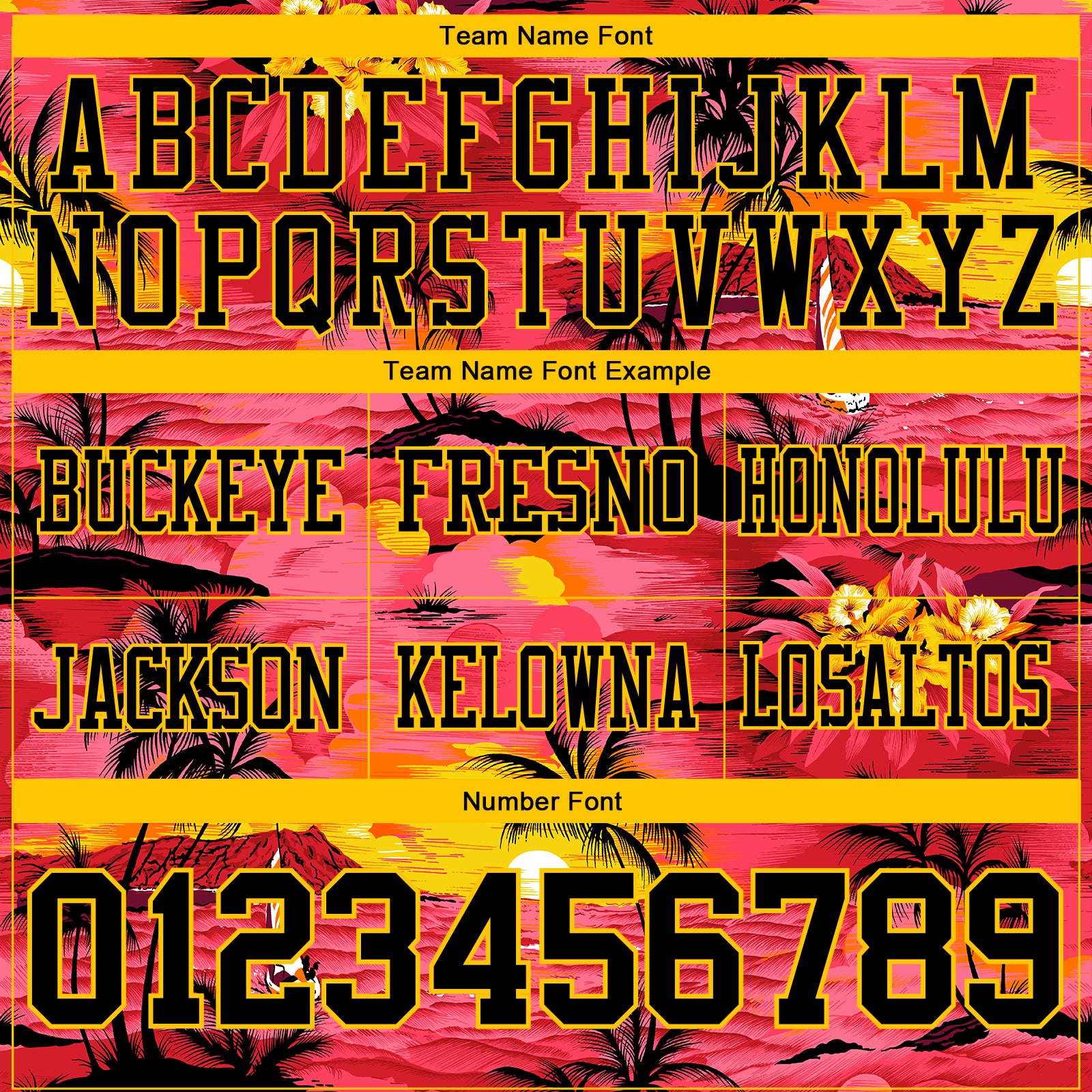 Custom Red Black-Yellow 3D Pattern Sun Beach Hawaii Palm Trees Authentic Football Jersey