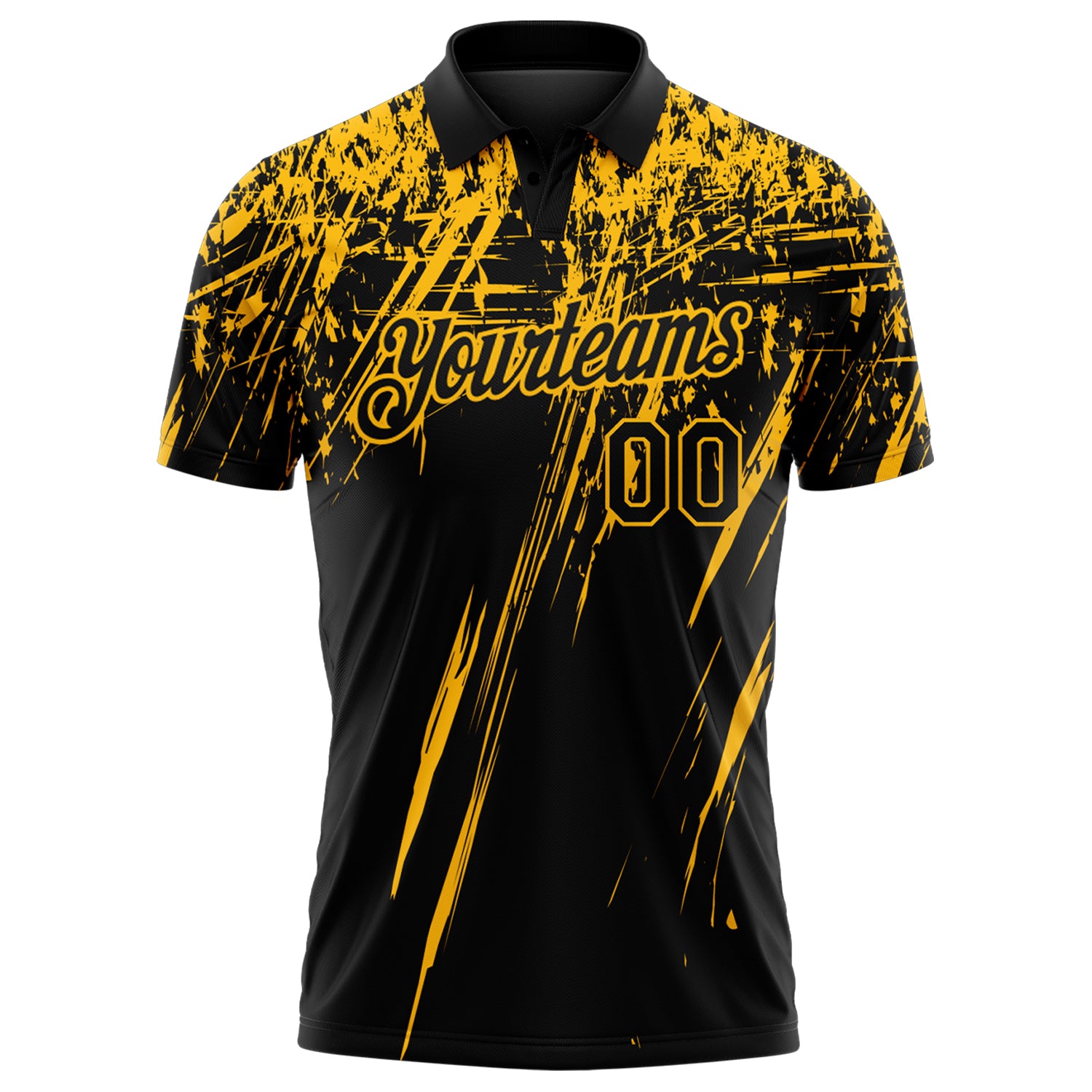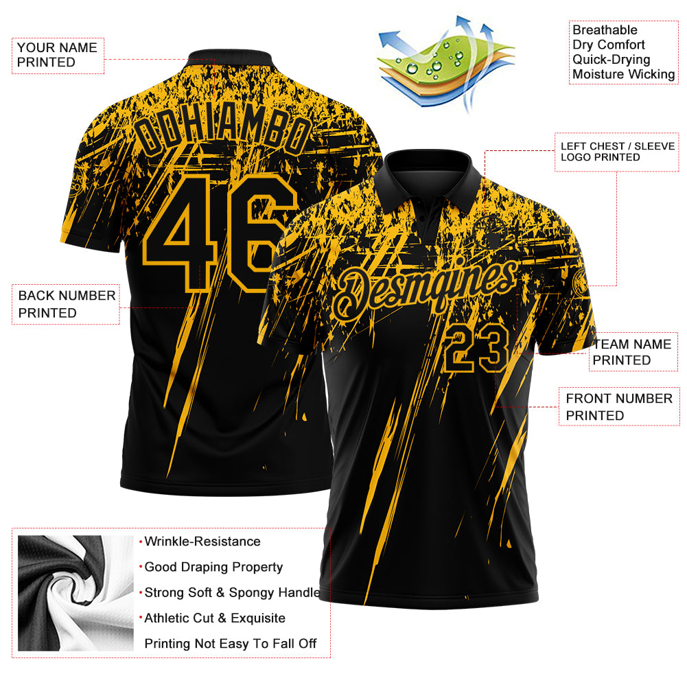 Custom Black-Gold Distressed Scratch Brush Stroke Performance Polo Shirt