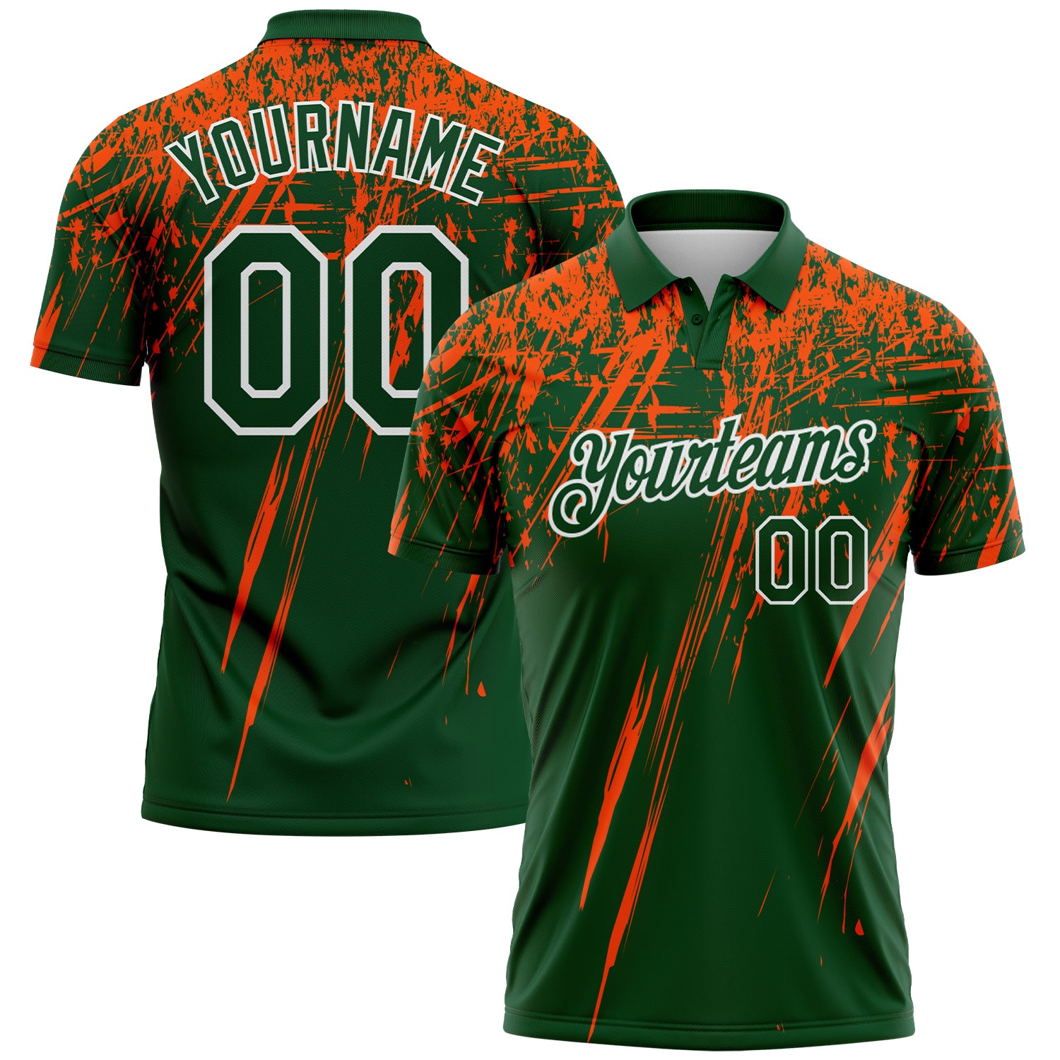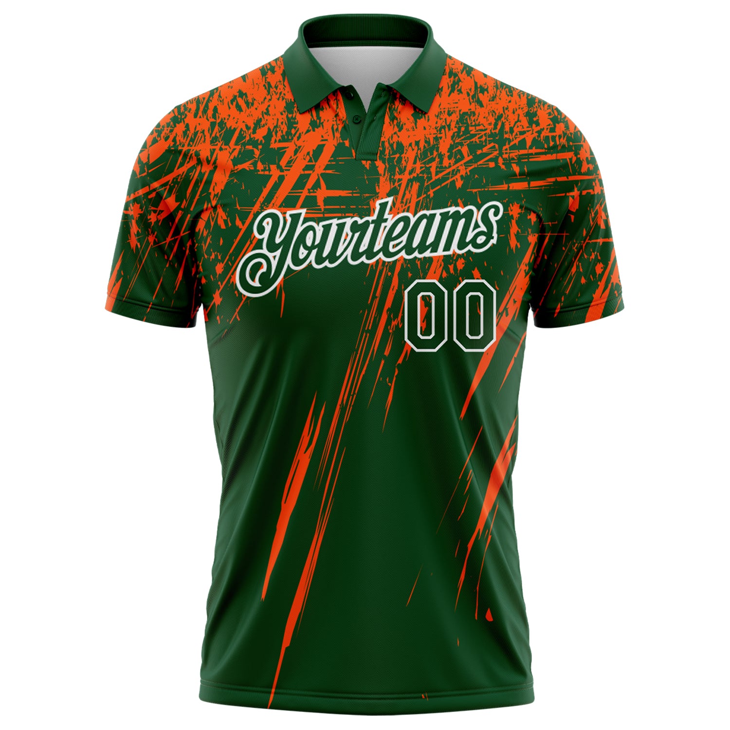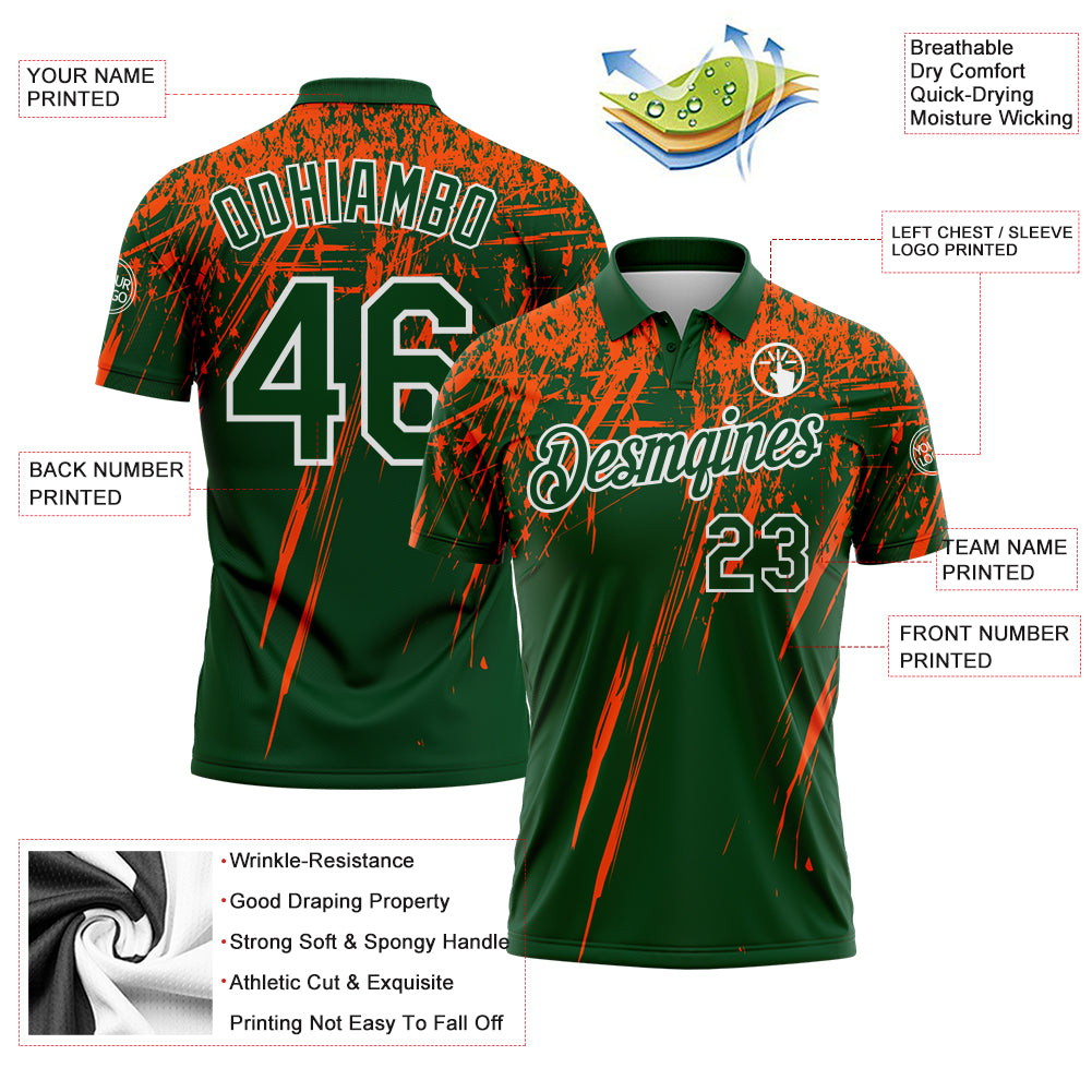 Custom Green Orange-White Distressed Scratch Brush Stroke Performance Polo Shirt
