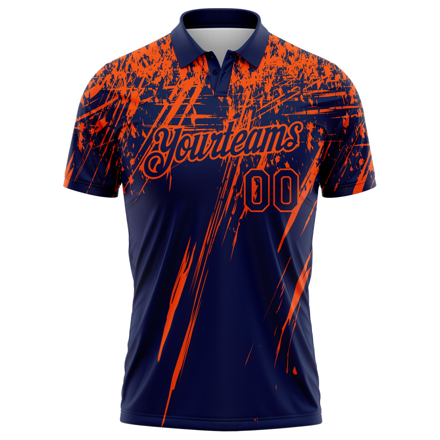 Custom Navy-Orange Distressed Scratch Brush Stroke Performance Polo Shirt