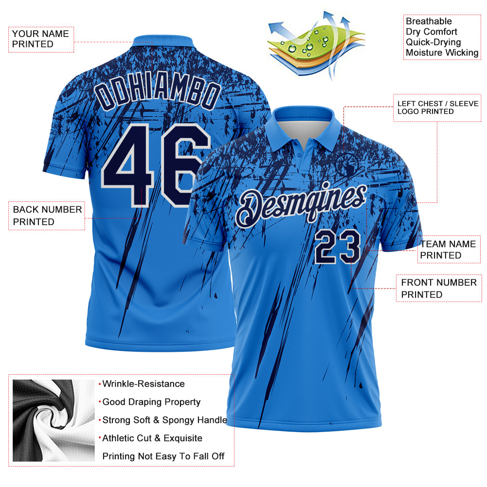 Custom Powder Blue Navy-White Distressed Scratch Brush Stroke Performance Polo Shirt