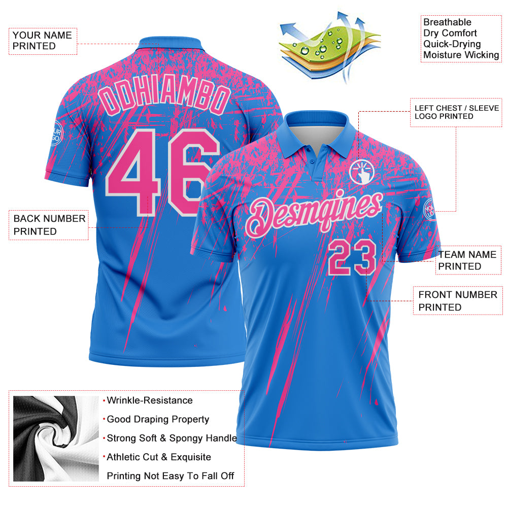 Custom Powder Blue Pink-White Distressed Scratch Brush Stroke Performance Polo Shirt