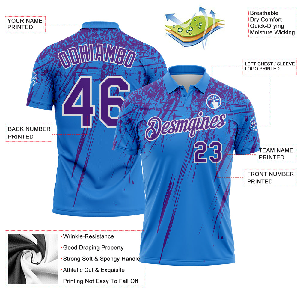 Custom Powder Blue Purple-White Distressed Scratch Brush Stroke Performance Polo Shirt