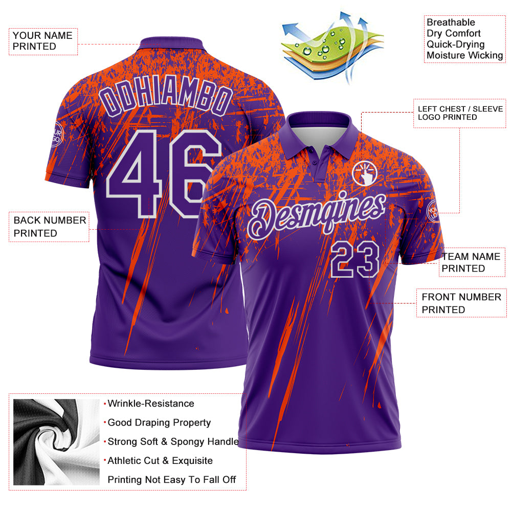 Custom Purple Orange-White Distressed Scratch Brush Stroke Performance Polo Shirt