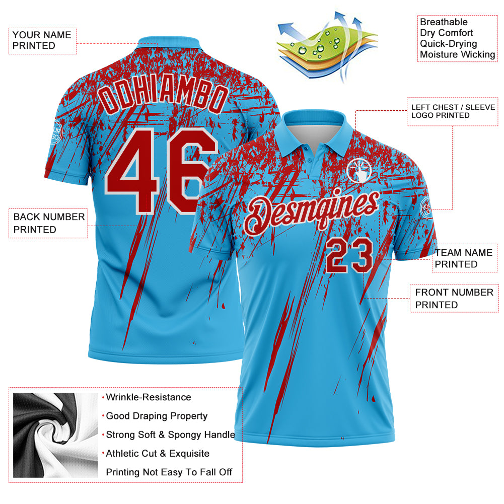 Custom Sky Blue Red-White Distressed Scratch Brush Stroke Performance Polo Shirt