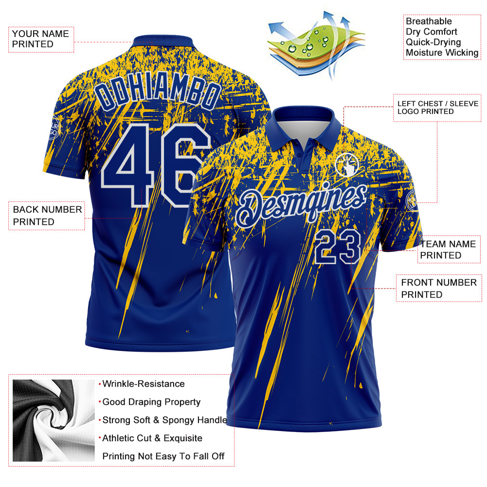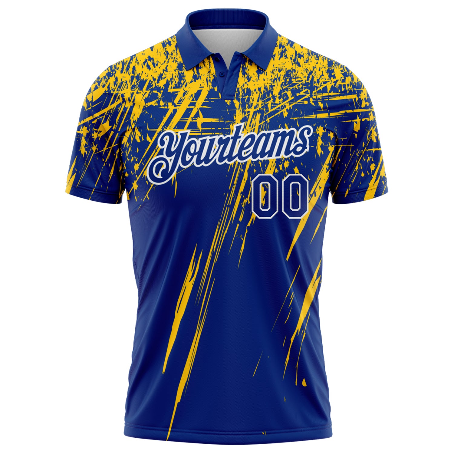Custom Royal Yellow-White Distressed Scratch Brush Stroke Performance Polo Shirt