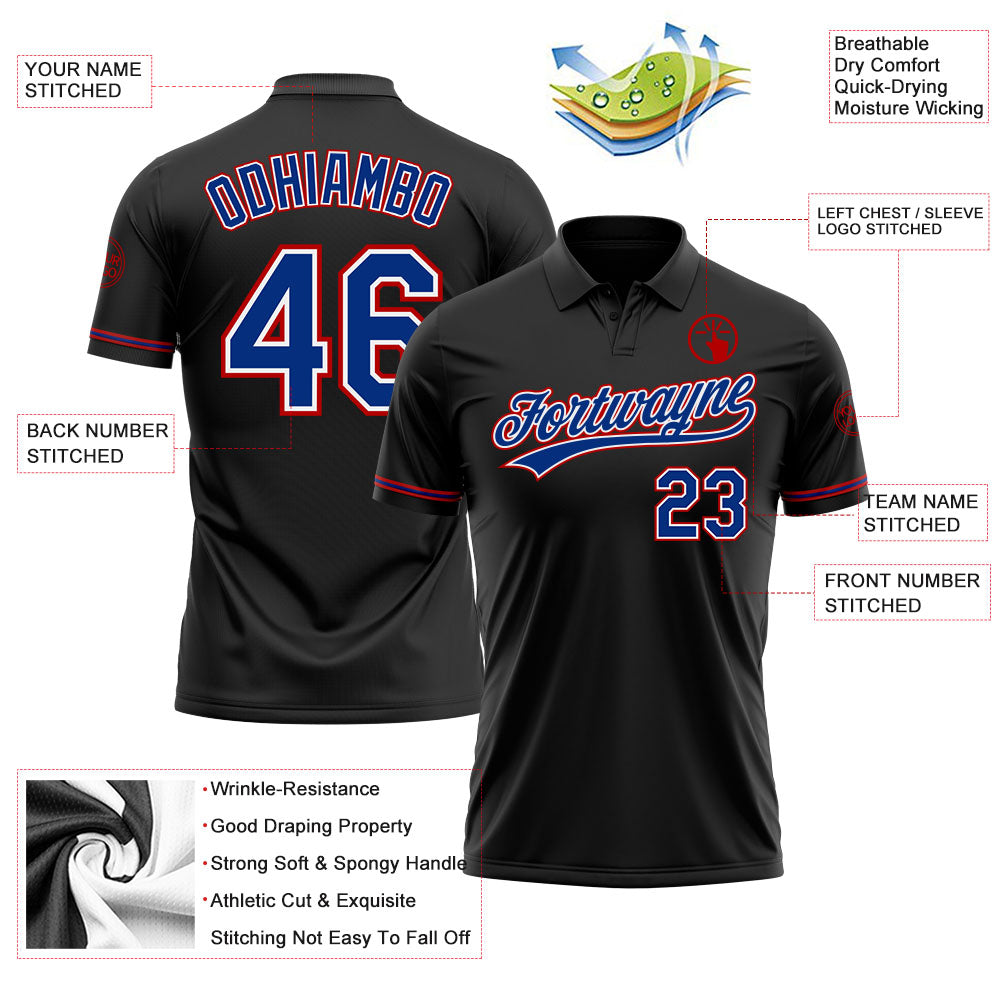 Custom Black Royal-Red Performance Vapor Golf Polo Shirt