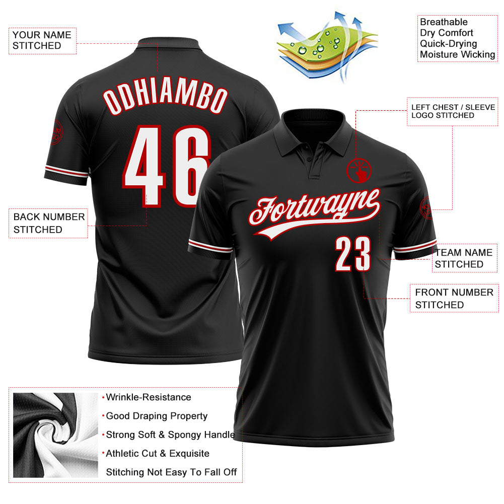 Custom Black White-Red Performance Vapor Golf Polo Shirt