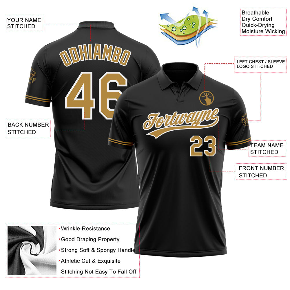 Custom Black Old Gold-White Performance Vapor Golf Polo Shirt