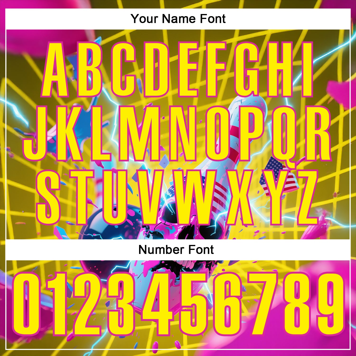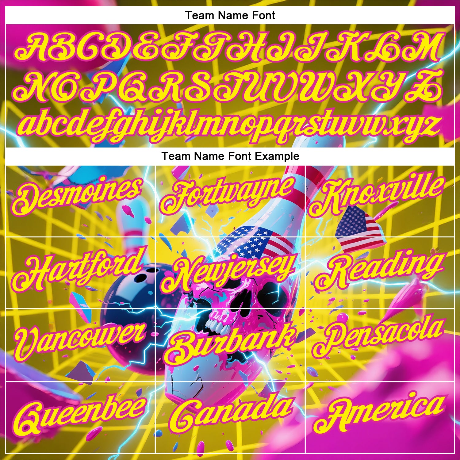 Custom Gold Light Yellow-Deep Pink 3D American Flag Splash Lightning Skull Bowling Performance Polo Shirt