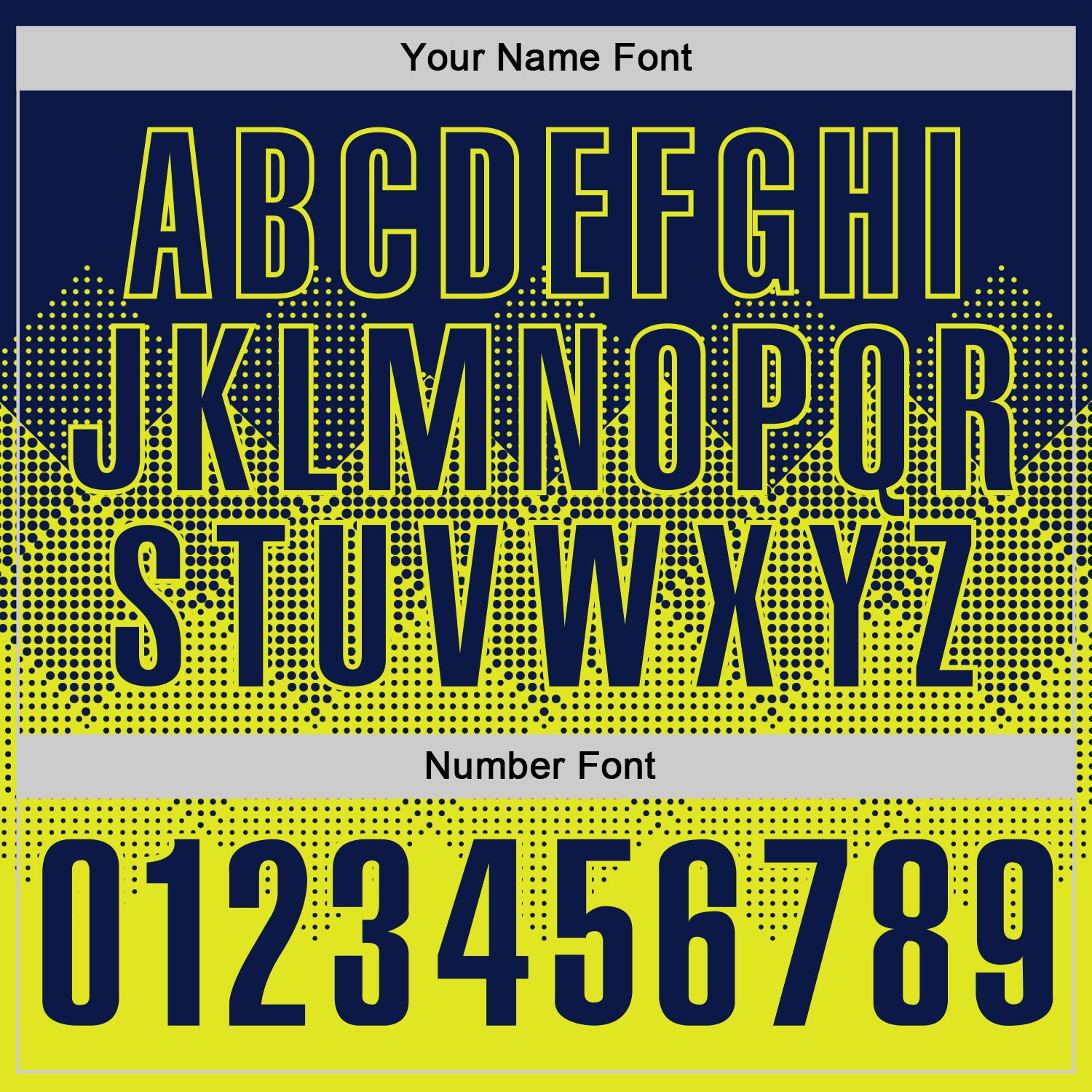 Custom Navy Neon Yellow 3D Gradient Square Shape Performance Polo Shirt