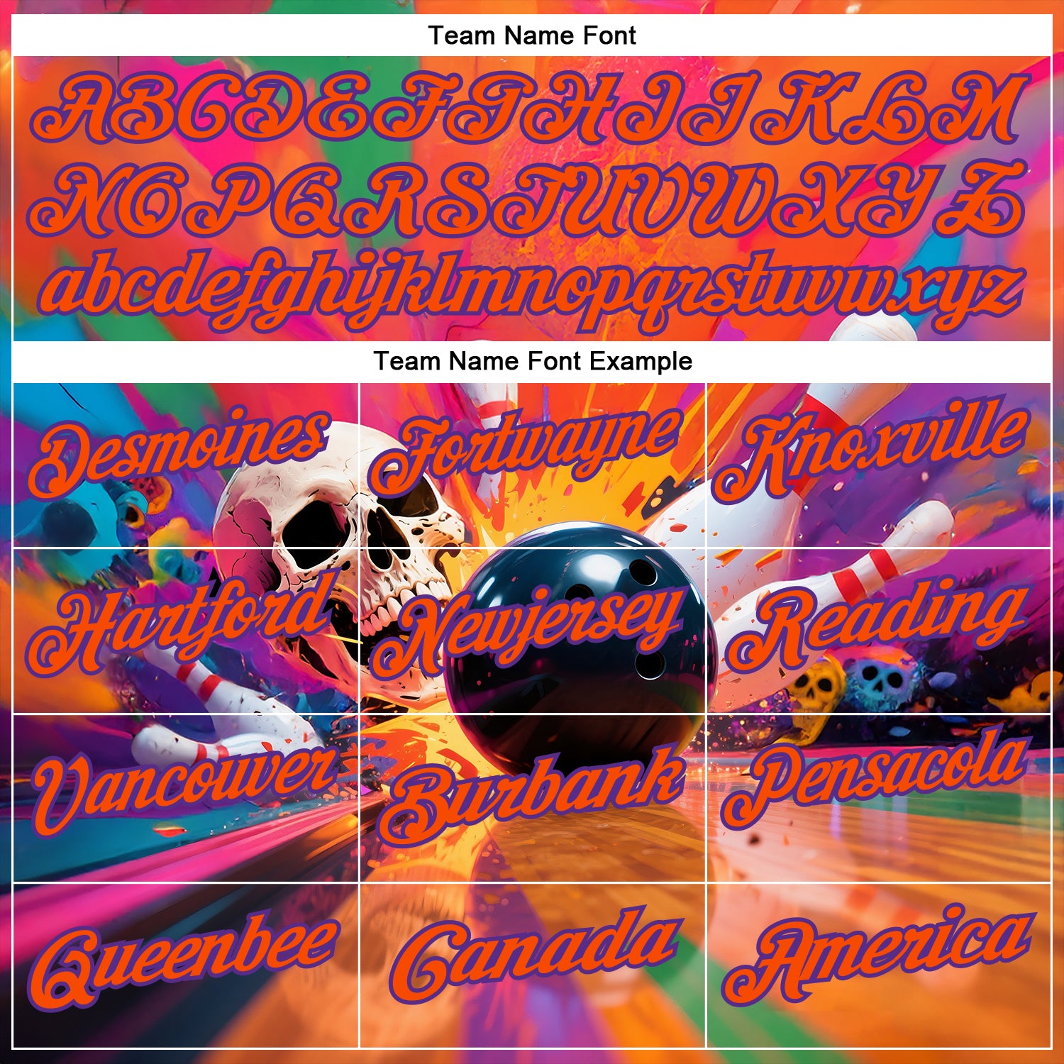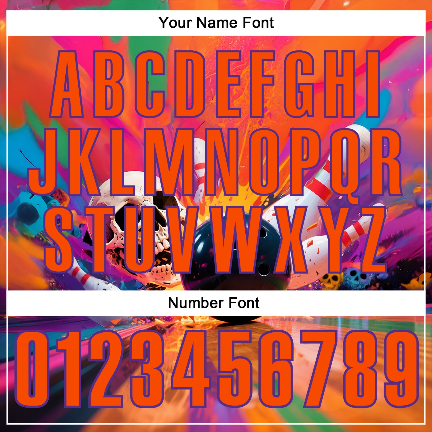 Custom Orange Purple 3D Splash Skull Bowling Performance Polo Shirt