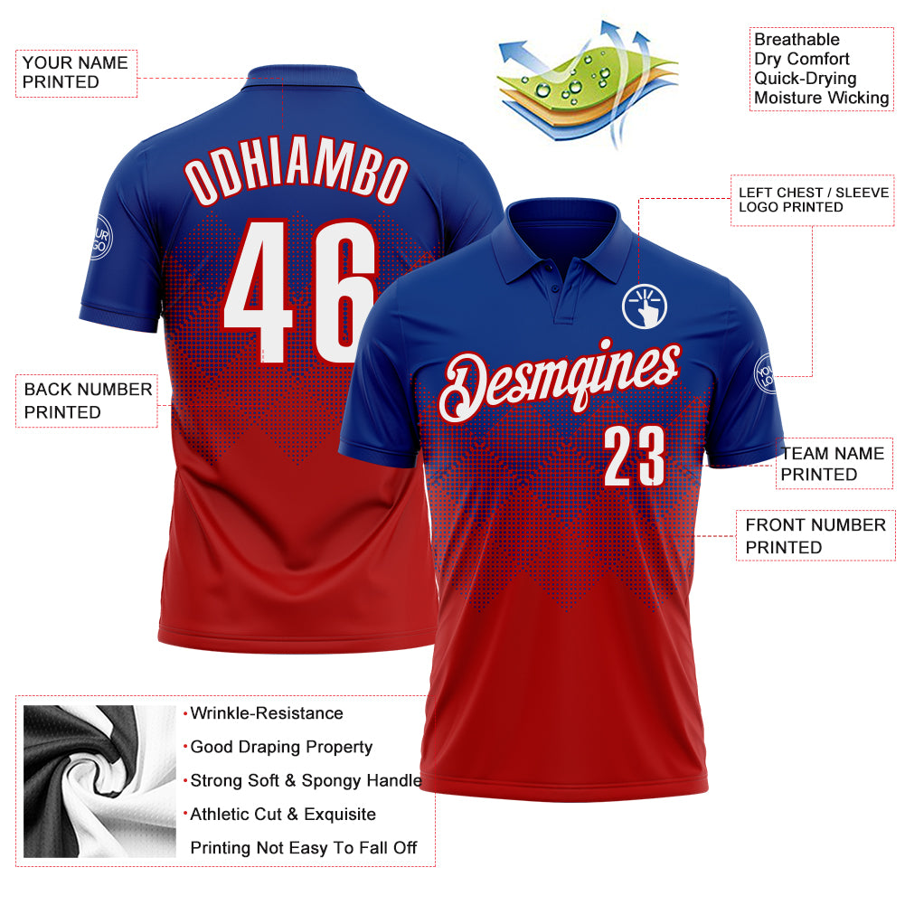Custom Royal White-Red 3D Gradient Square Shape Performance Polo Shirt