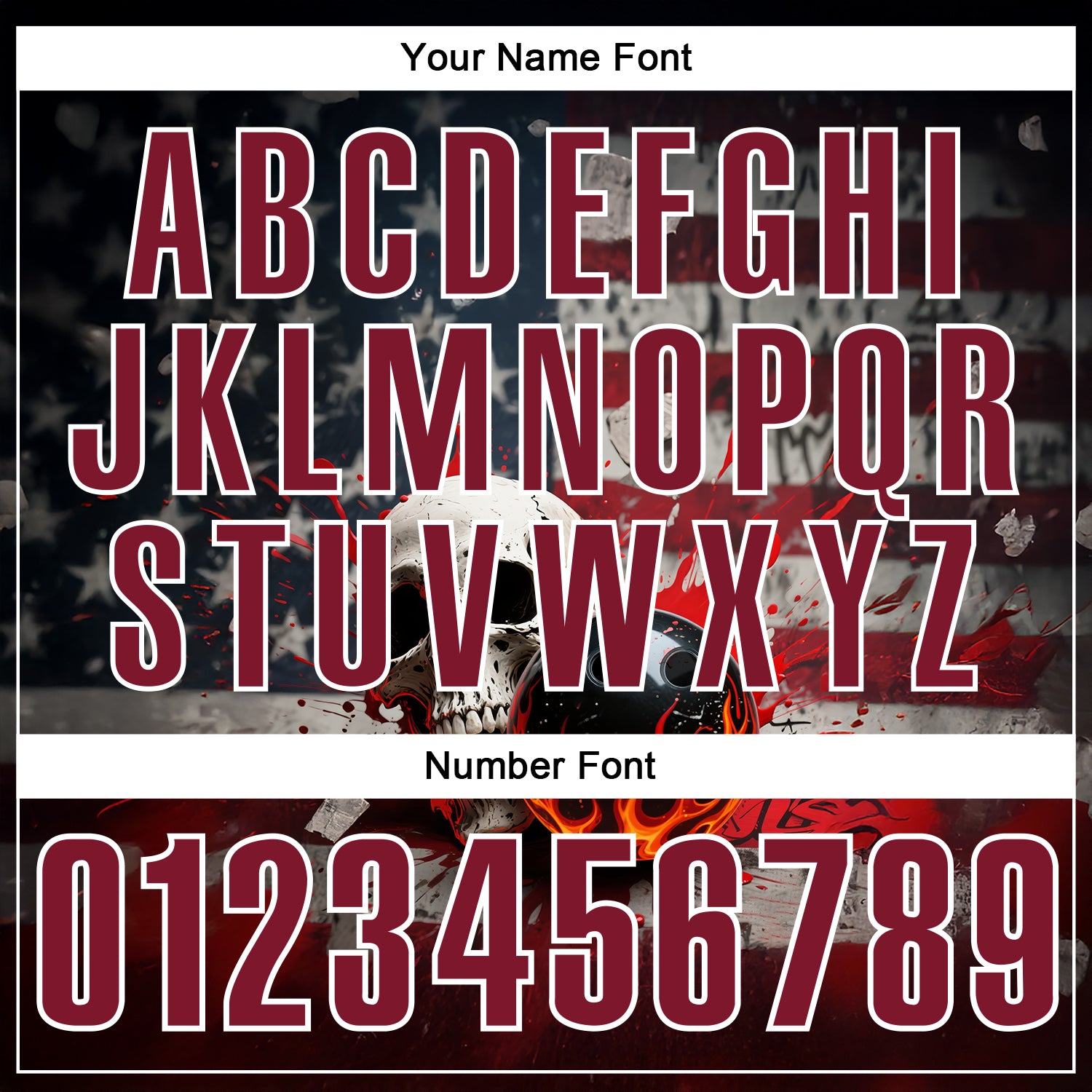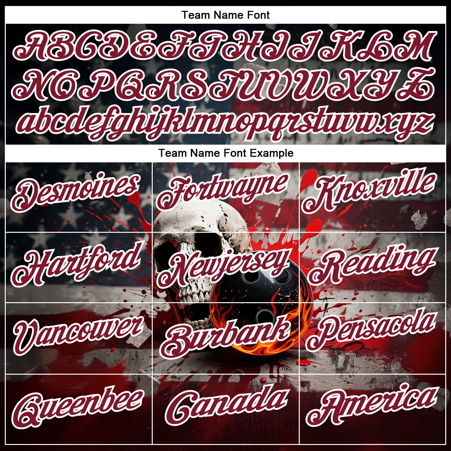 Custom Navy Crimson-White 3D American Flag Splash Flame Skull Bowling Performance Polo Shirt