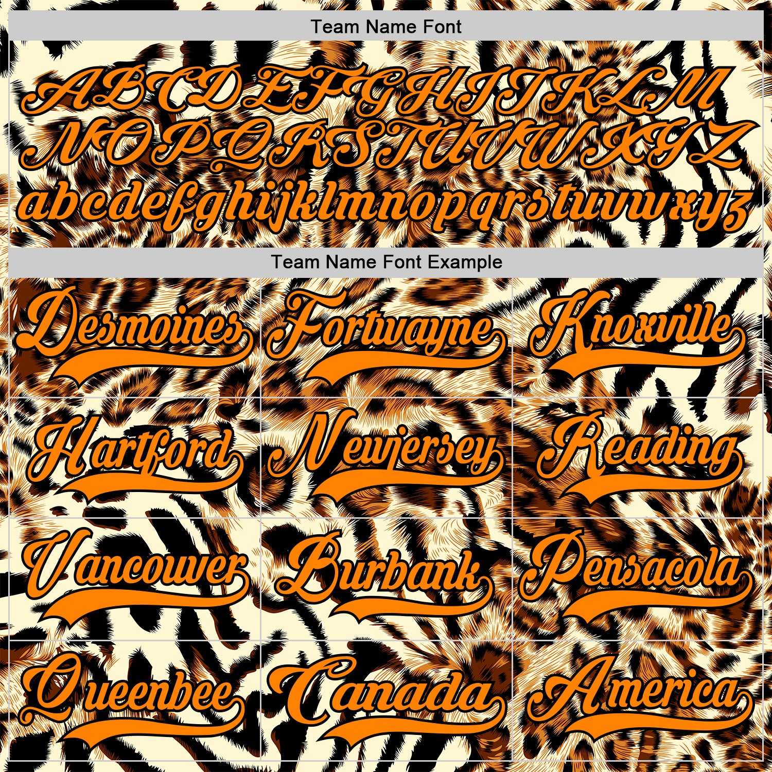 Custom Cream Bay Orange-Black 3D Pattern Leopard Print Neon Hockey Lace Neck Jersey