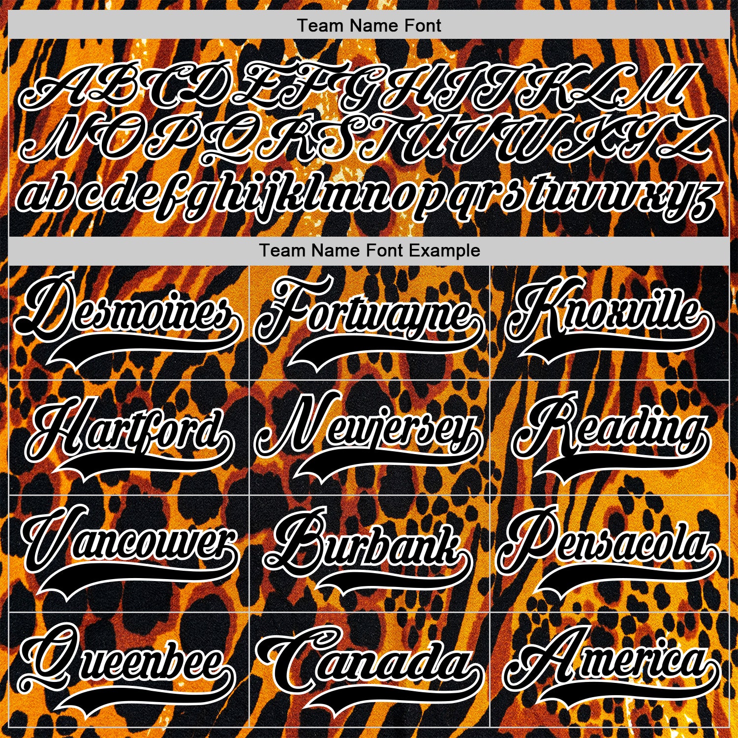 Custom Orange Black-White 3D Pattern Leopard Print Hockey Lace Neck Jersey