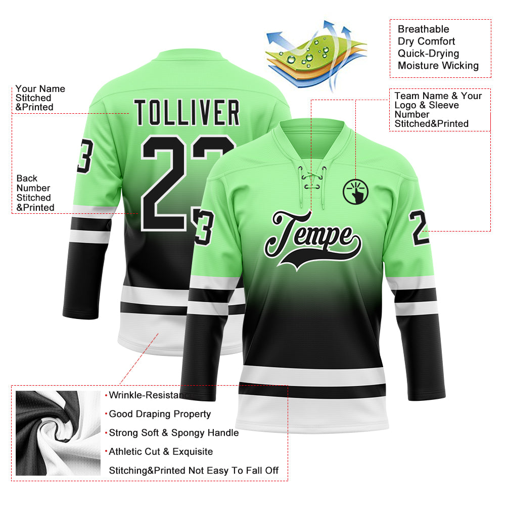 Custom Pea Green Black-White Fade Fashion Hockey Lace Neck Jersey
