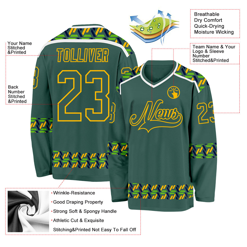 Custom Green Gold-White 3D Pattern Plaid Hockey Jersey