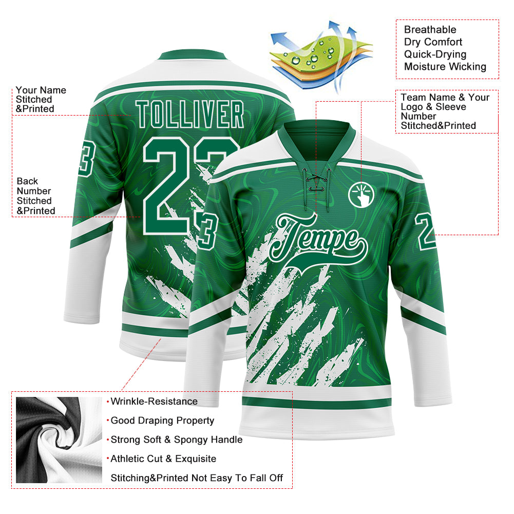 Custom Kelly Green White 3D Splash Art Hockey Lace Neck Jersey