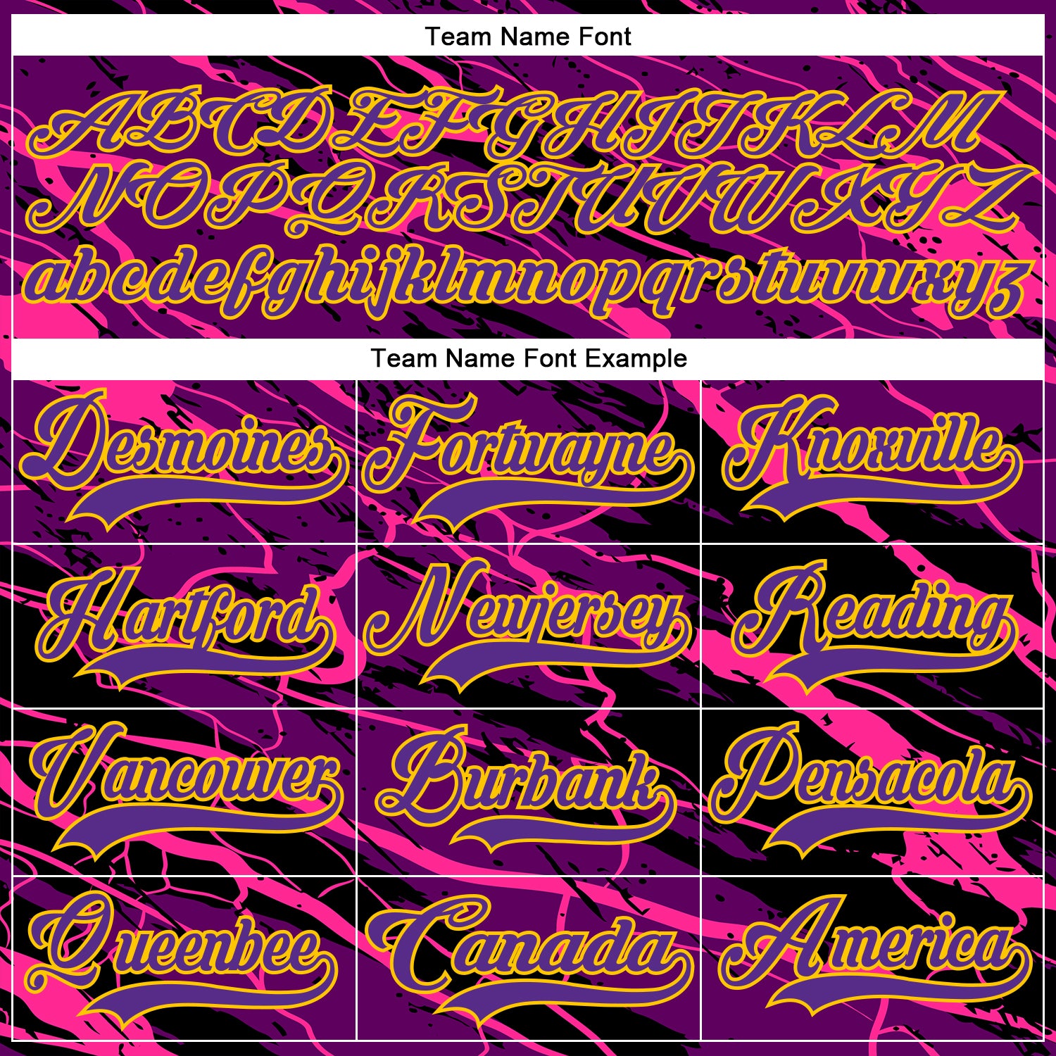 Custom Purple Black Pink-Yellow 3D Pattern Lightning Hockey Lace Neck Jersey