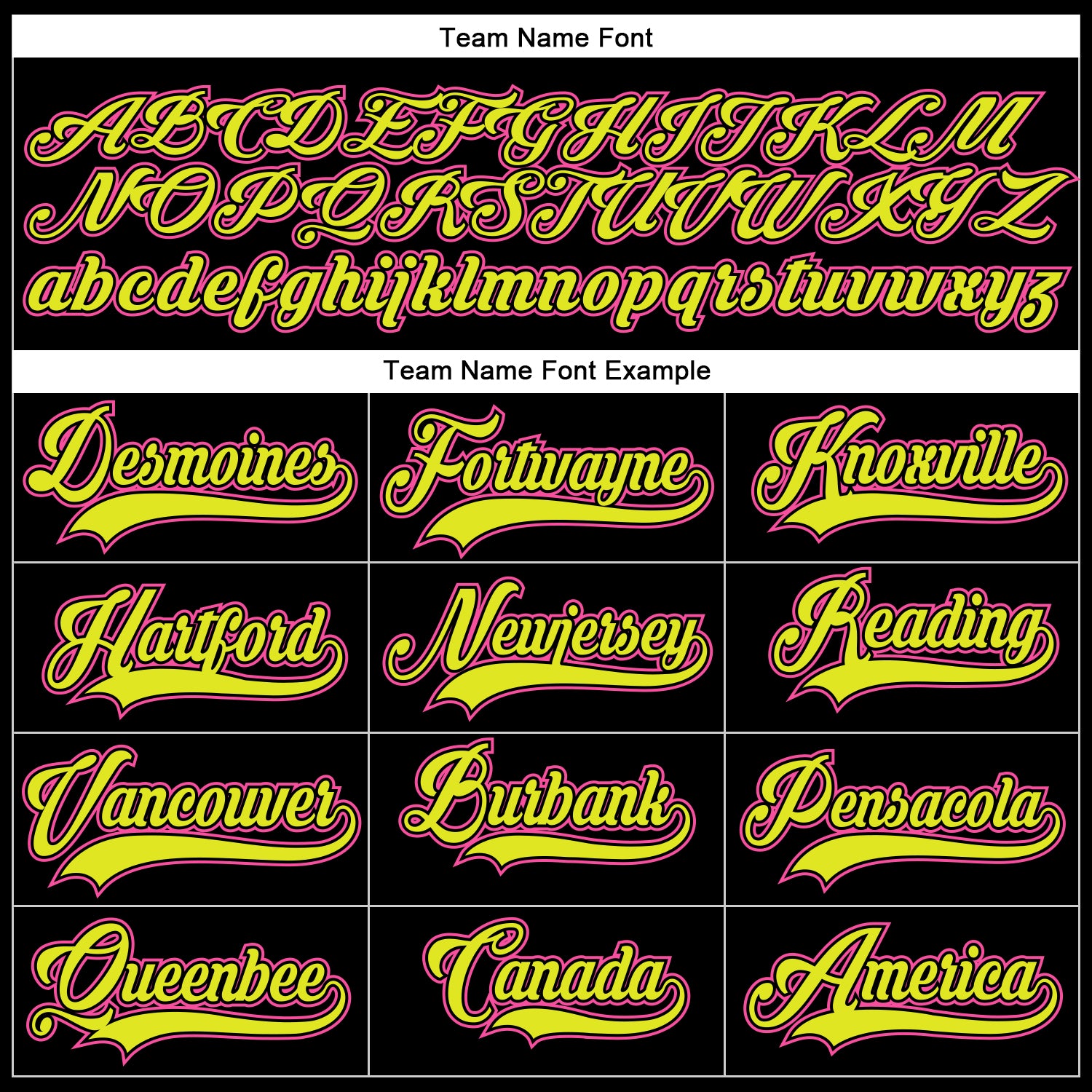 Custom Black Neon Yellow-Pink Hockey Lace Neck Jersey