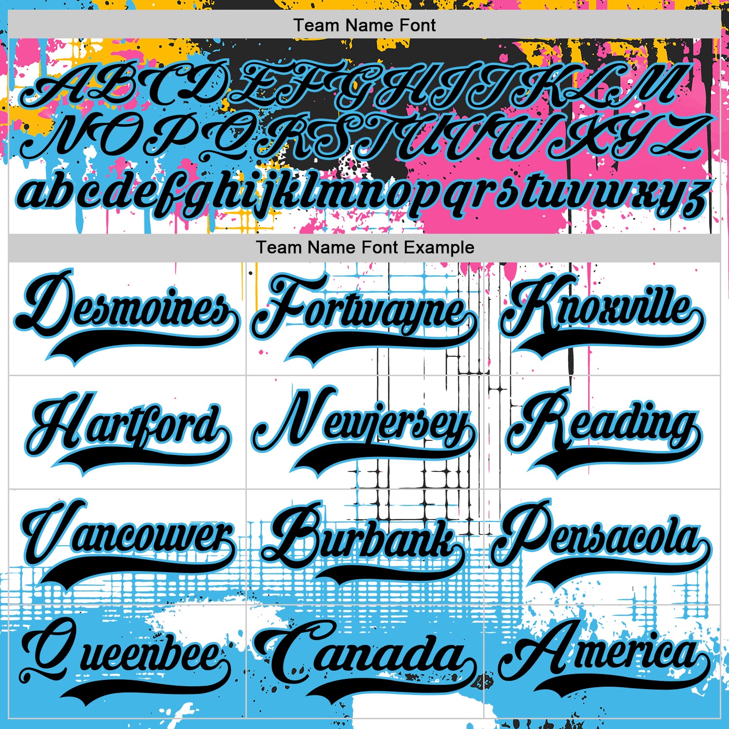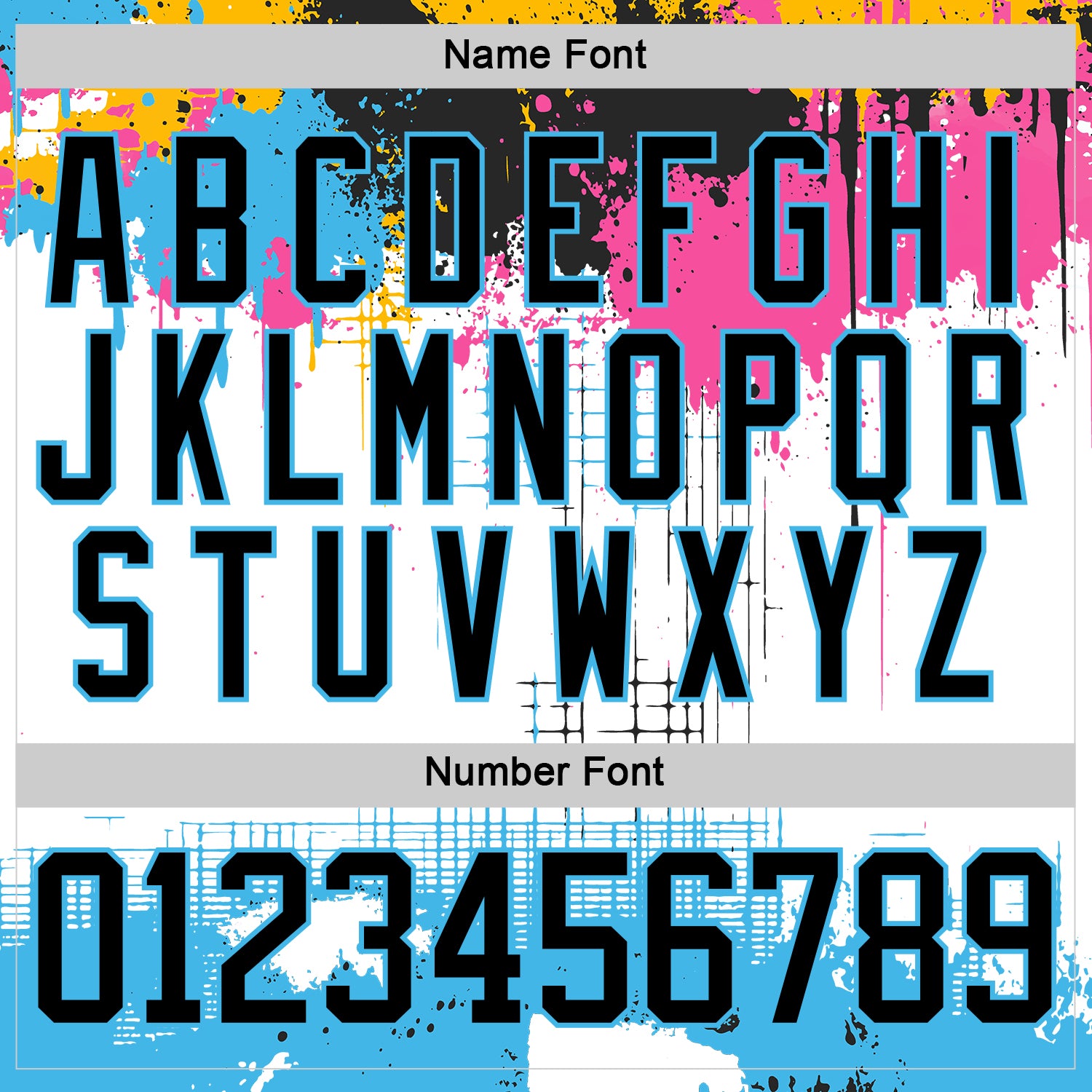 Custom White Black Sky Blue Pink-Gold 3D Pattern Abstract Splatter Paint Hockey Lace Neck Jersey