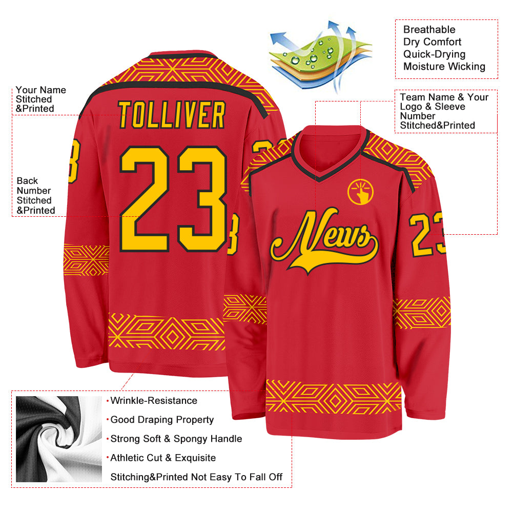 Custom Red Yellow-Black 3D Pattern Plaid Hockey Jersey