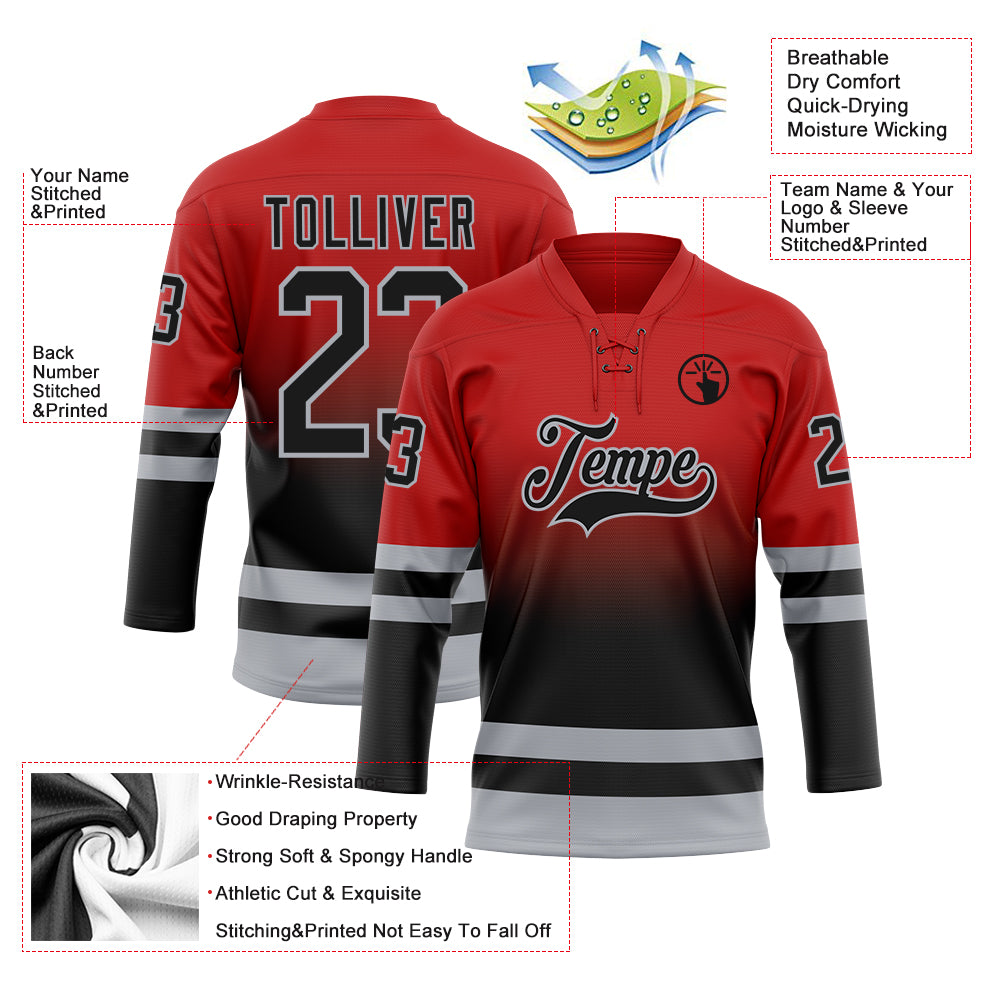 Custom Red Black-Gray Fade Fashion Hockey Lace Neck Jersey