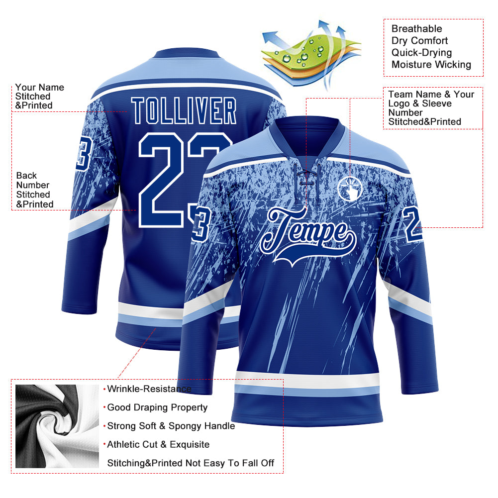 Custom Royal Light Blue-White 3D Splash Hockey Lace Neck Jersey