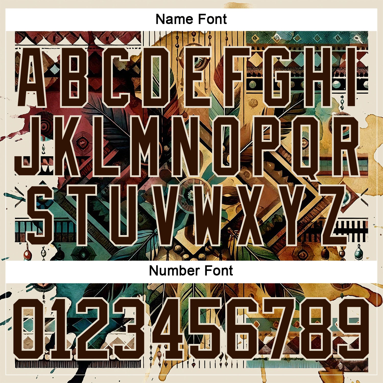 Custom Brown Old Gold-Cream 3D Pattern Tribal Indigenous Grunge Geometric Splash Hockey Lace Neck Jersey