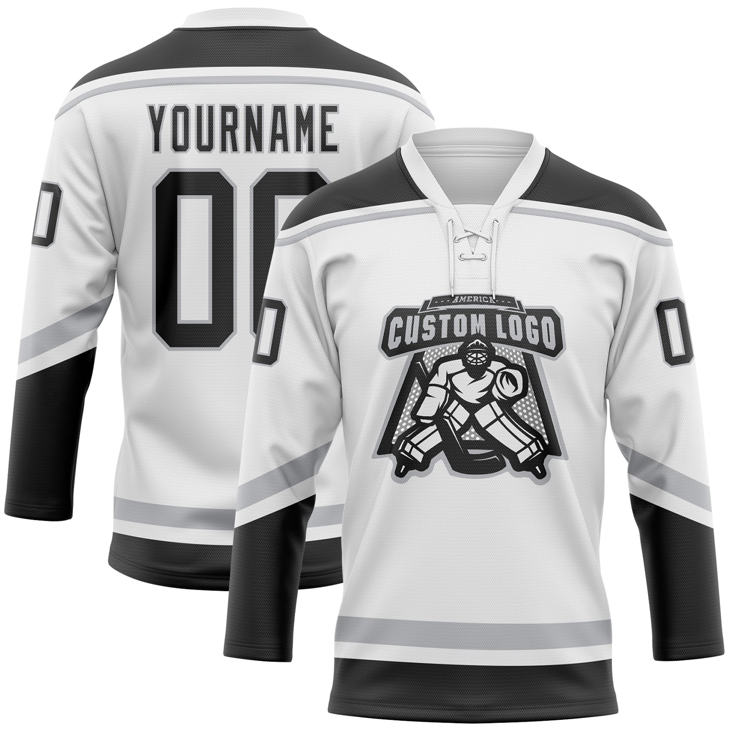 Custom White Black-Gray Hockey Lace Neck Jersey