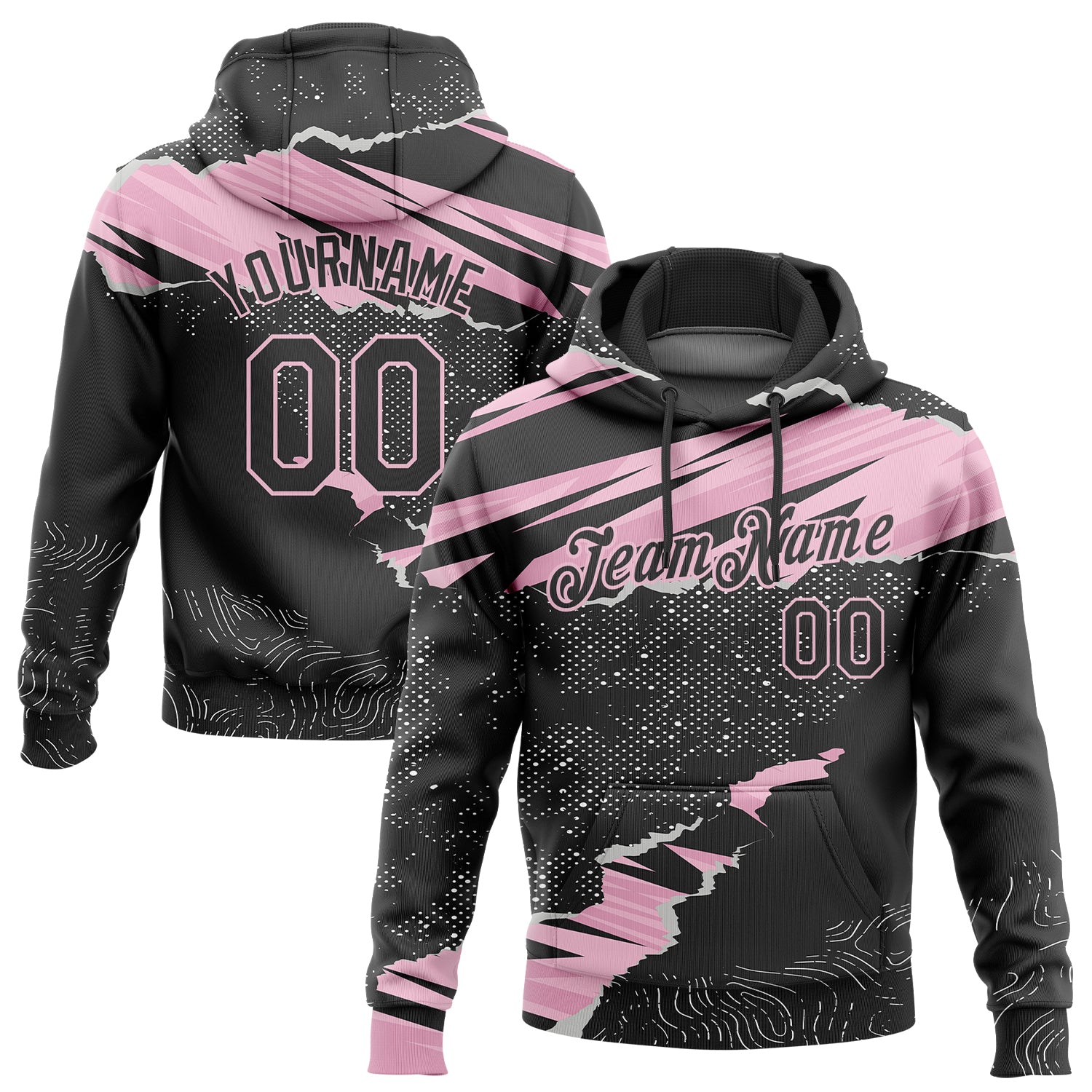 Custom Stitched Black Light Pink 3D Pattern Design Torn Paper Style Sports Pullover Sweatshirt Hoodie