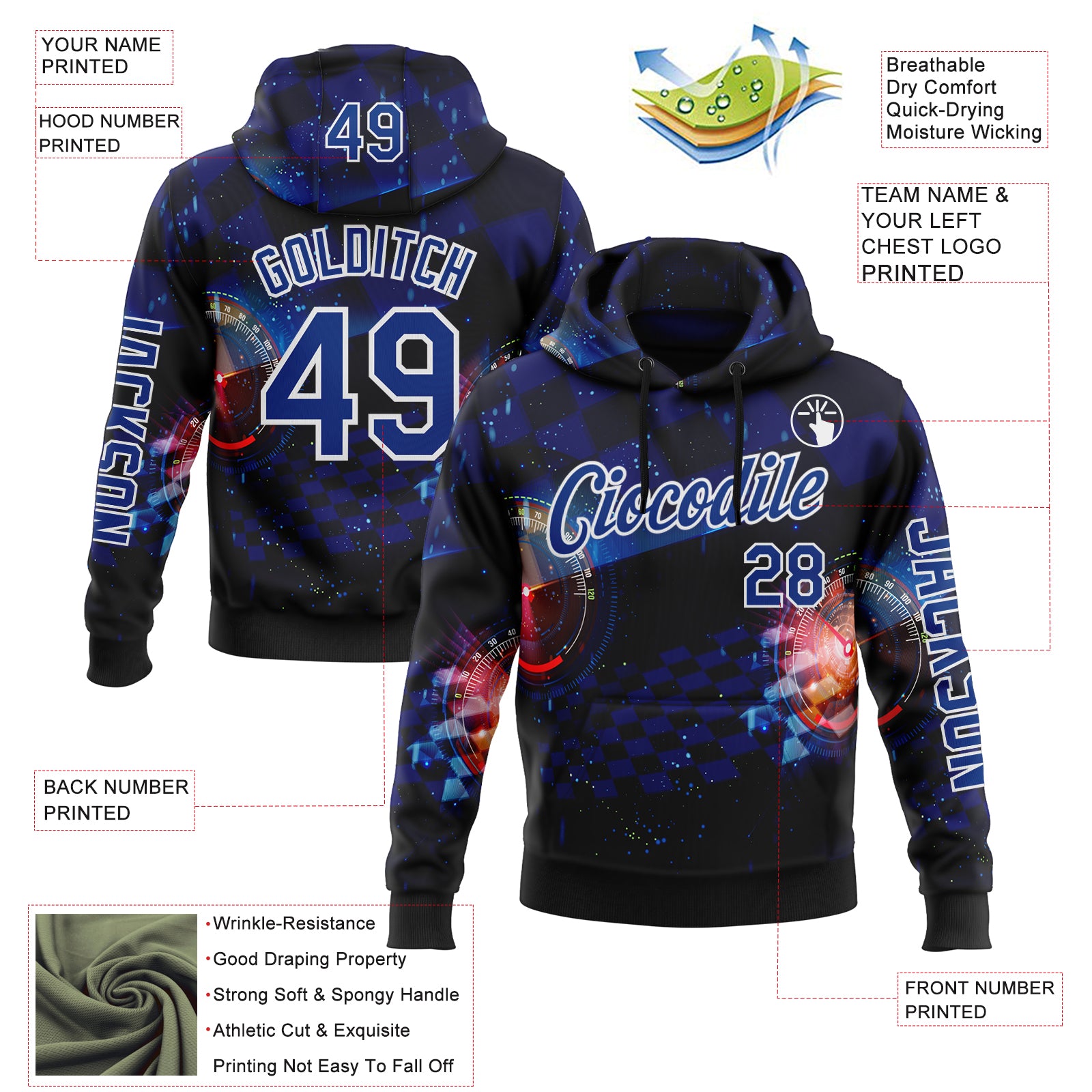 Custom Black Royal-White 3D Pattern Design Formula Auto Car Racing Motorsport Sports Pullover Sweatshirt Hoodie