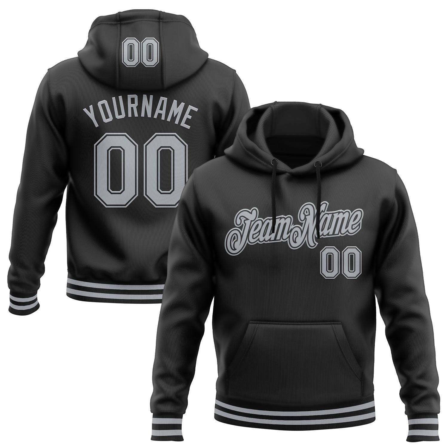 Custom Stitched Black Gray Sports Pullover Sweatshirt Hoodie