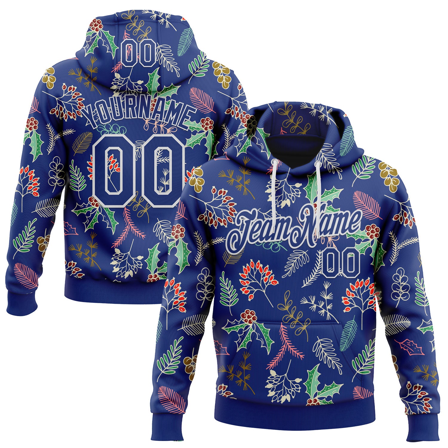 Custom Stitched Royal Royal-White 3D Christmas Sports Pullover Sweatshirt Hoodie