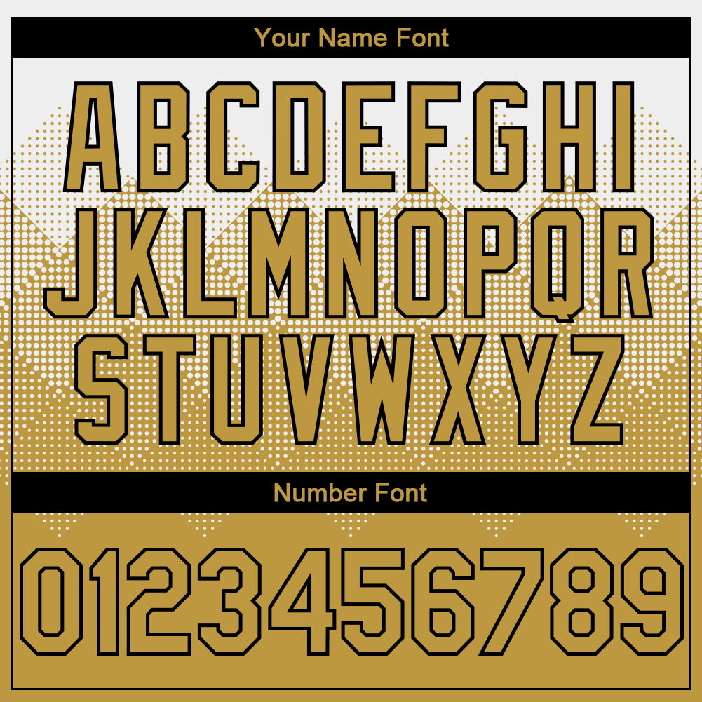 Custom White Old Gold-Black Gradient Square Shape 3D Pattern Design Bomber Full-Snap Varsity Letterman Hoodie Jacket