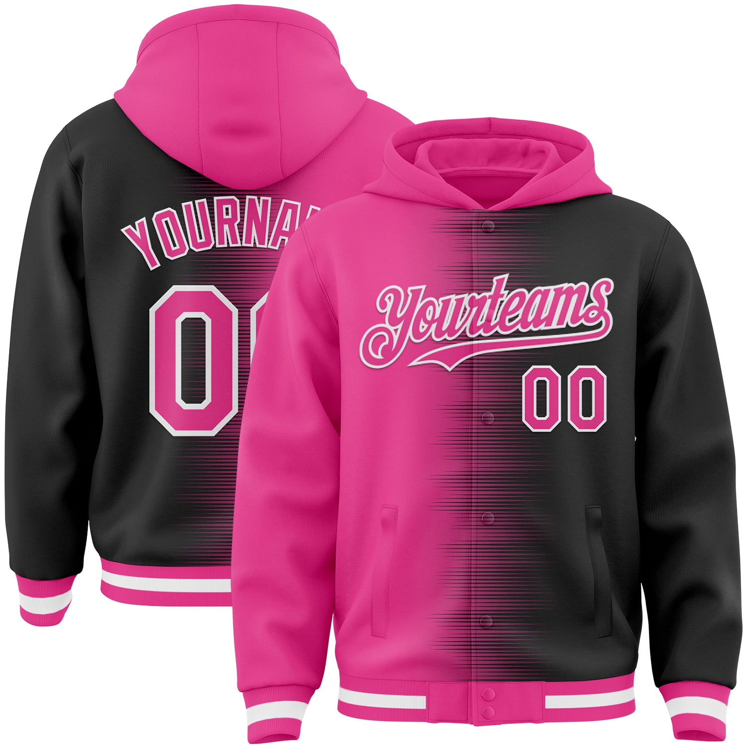 Custom Pink Black-White Gradient Line Bomber Full-Snap Varsity Letterman Hoodie Jacket