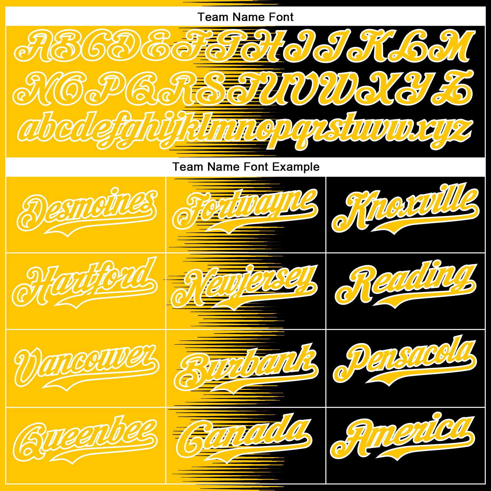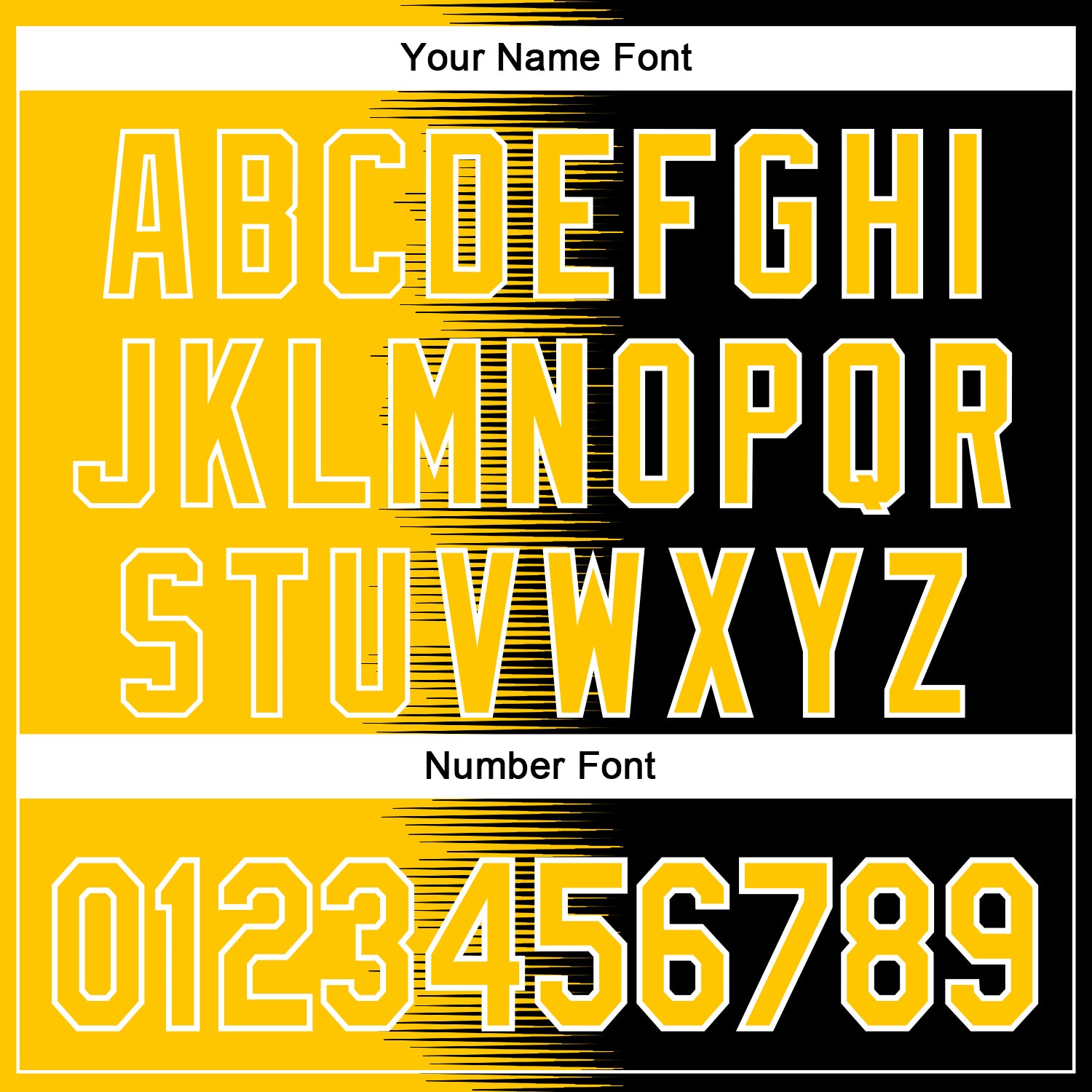 Custom Yellow Black-White Gradient Line Bomber Full-Snap Varsity Letterman Hoodie Jacket