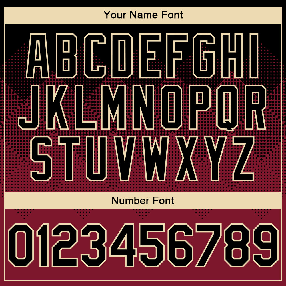 Custom Black Maroon-Cream Gradient Square Shape 3D Pattern Design Bomber Full-Snap Varsity Letterman Hoodie Jacket